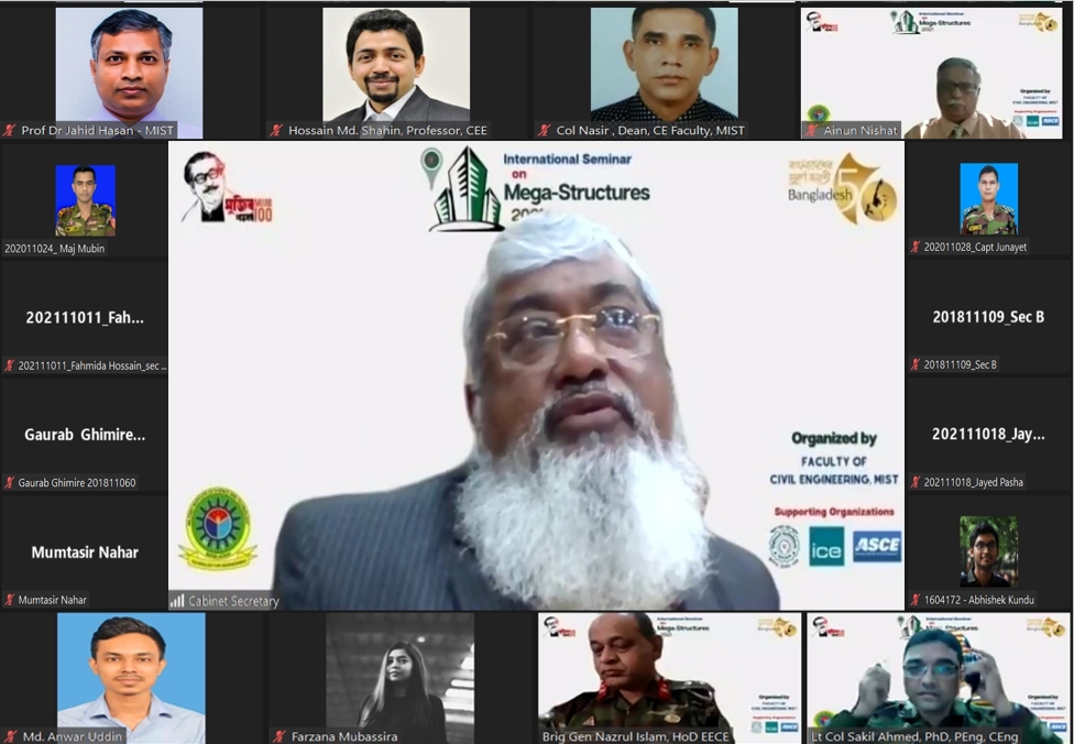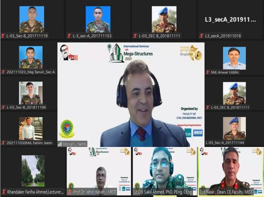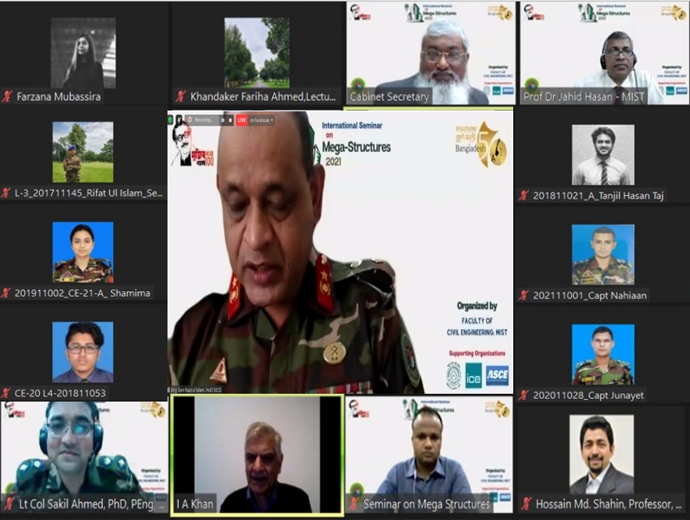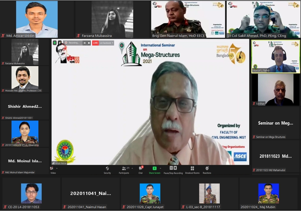 International Seminar on Mega-Structures 2021 was organized for the very first time by the Department of Civil Engineering of Military Institute of Science and Technology (MIST). In a time of pandemic to avoid any possible health issues and to ensure safety the “International Seminar on Mega-Structures 2021” was conducted on the online platform by Zoom and Facebook live. The event held on 12 December 2021 from 09:30 AM to 12:30 PM.