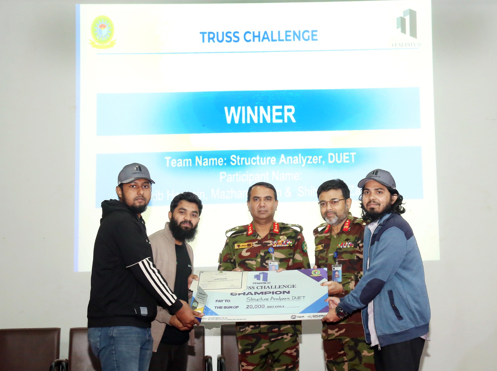 The seminar was moderated by Prof. Md Zoynul Abedin, who opened the session by emphasizing that engineering is inherently humanitarian—every structure, every design, every precaution directly influences human lives. The first keynote speaker, Prof. Mehedi Ahmed Ansary, delivered an engaging presentation on Bangladesh’s seismic source zones, historical earthquakes, and the vulnerabilities associated with rapid urbanization. The second keynote, Prof. Raquib Ahsan, spoke on connections between technical preparedness and national resilience. He reminded the audience that resilience is not only an engineering endeavor but a nationwide effort involving communities, policymakers, and institutions. The final keynote speaker, Prof. Md Tauhid Ur Rahman, reflected on the 5.7-magnitude earthquake of November 21, 2025, which exposed critical gaps in evacuation, communication, and urban preparedness in Dhaka. He shared the human side of the disaster—the panic, the delays, the preventable damage—and drew lessons from successful response models in Japan and China. The program ended with a prize giving ceremony amongst the winners of the previous day competitions.