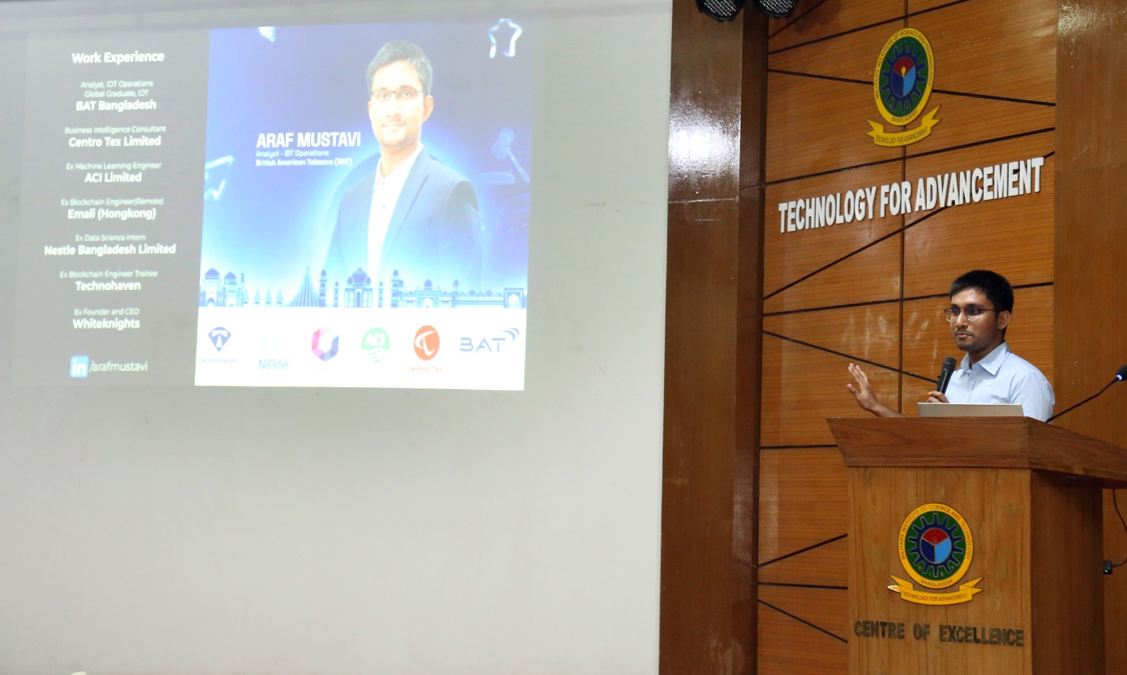 The insightful session was led by Mr. Araf Mustavi, Analyst – IDT Operations at BAT Bangladesh and Lead AI & ML Instructor at Interactive Cares. He focused on practical pathways to building a career in AI and Machine Learning, covering core concepts, real-world applications, project-building strategies, and internship opportunities in AI/ML. Mr. Mustavi also shared highlights from his impactful work in digital transformation and analytics, offering students a valuable industry-insider perspective.