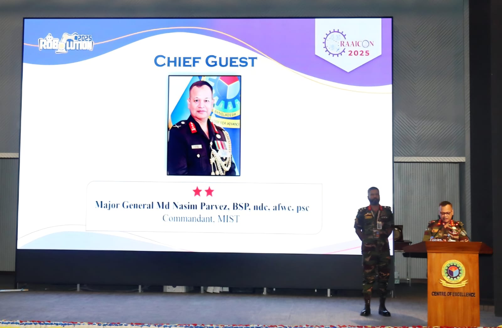 The Military Institute of Science & Technology (MIST) kicked off Robolution 2025 and the 4th IEEE RAAICON Conference with a grand inauguration on 27 November 2025. Maj Gen Md Nasim Parvez, BSP, ndc, afwc, psc, Commandant of MIST graced the occasion as chief guest.
