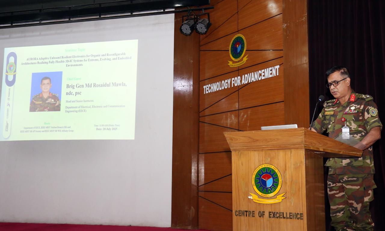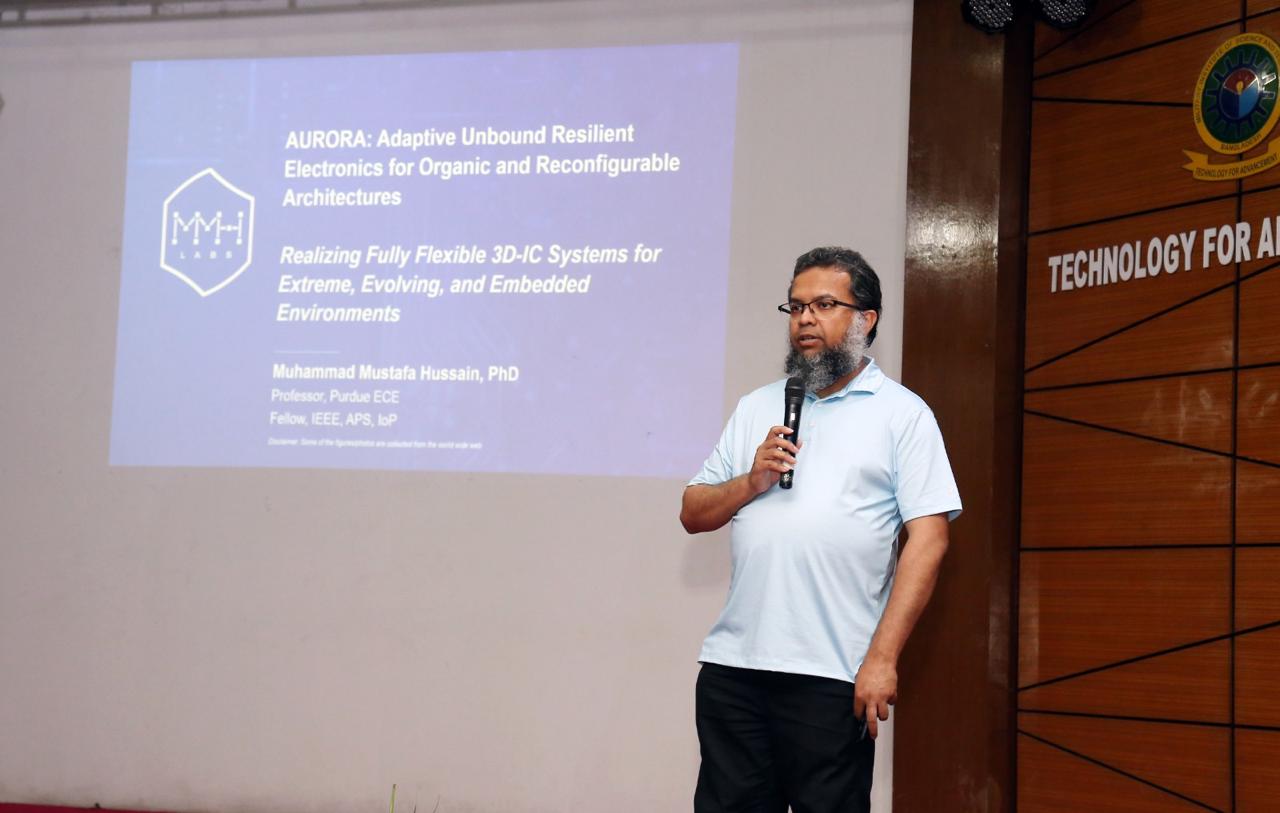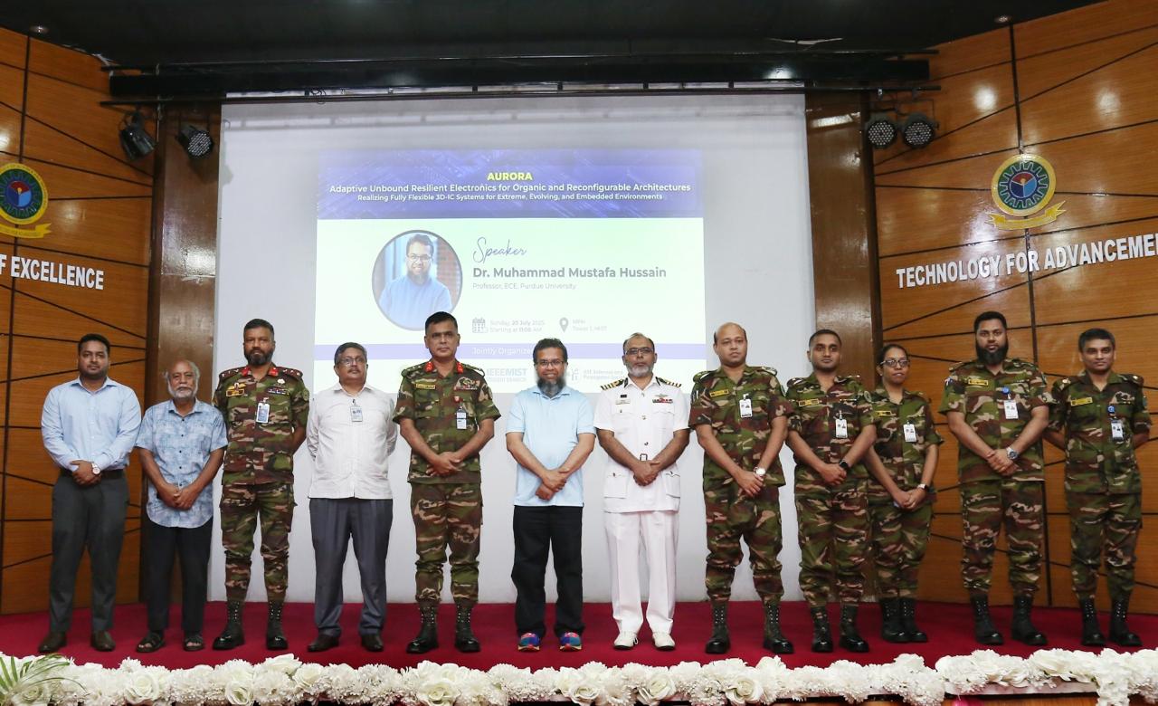 Military Institute of Science and Technology (MIST) proudly hosted a visionary technical session on 20 th July delivered by Prof. Dr. Muhammad Mustafa Hussain from Purdue University, a distinguished Fellow of IEEE. The session focused on AURORA—Adaptive Unbound Resilient Electronics, presenting a transformative outlook on the future of flexible 3D-IC systems and their far-reaching applications in healthcare, aerospace, and sustainable technologies.