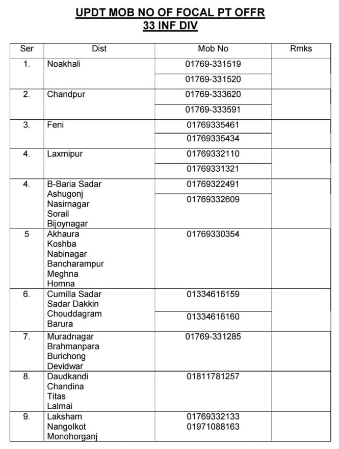 Several districts of Chattogram Division have been affected heavily by flood. In this grave sitution MIST authority would like to stand beside its students. If you or your parents are in need of support, please communicate to your respective Department GSO-2. We shall try to help and support you through the deployed military personnel in those districts. A list of focal point mobile numbers of Army and Navy headquarters/units/sub-units are attached below: