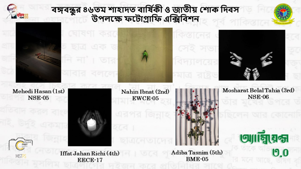 Results of Online Photo Exhibition " Ambience 3" on the Occasion of the 46th Death Anniversary of Bangabandhu and National Mourning Day