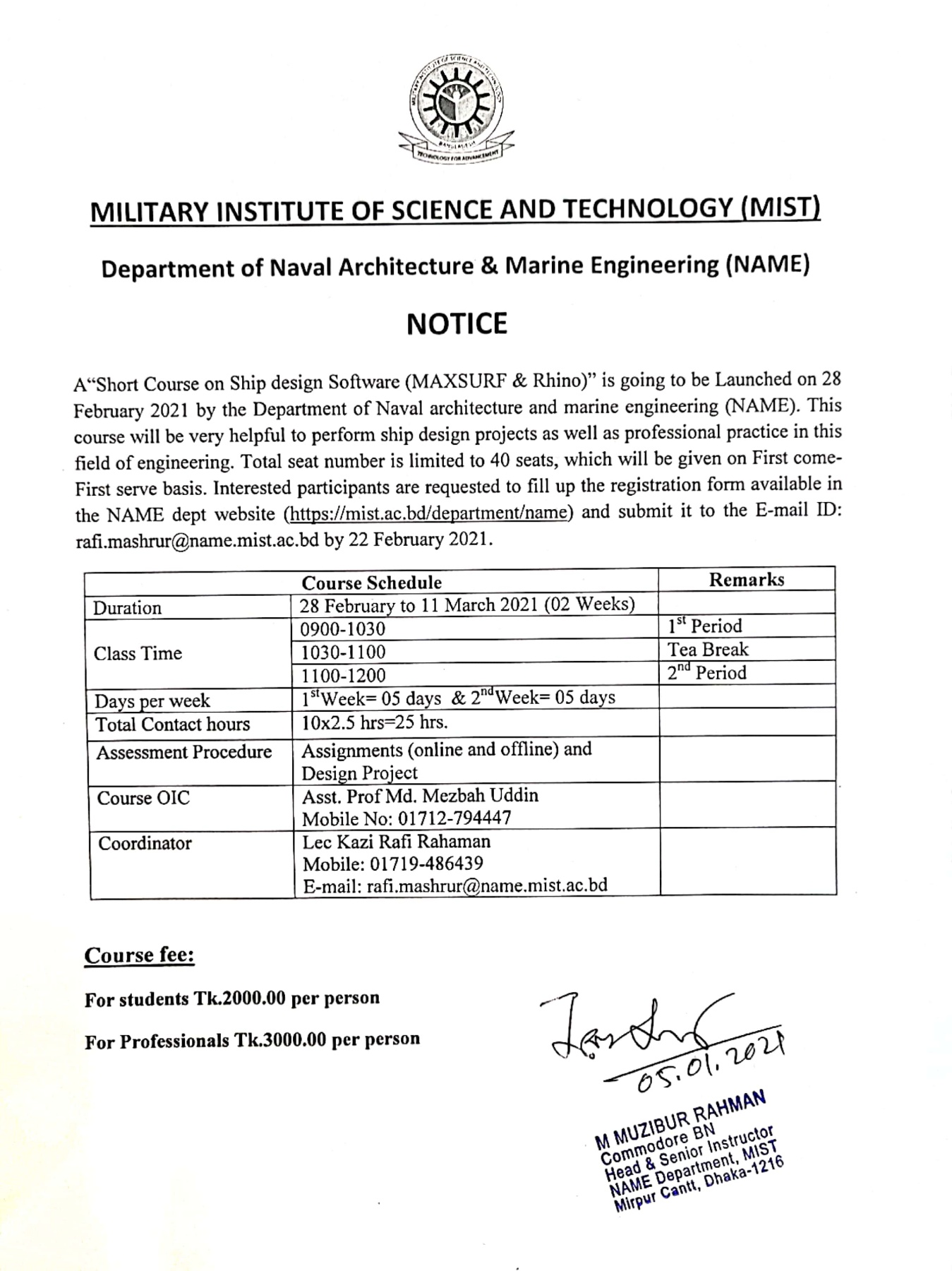 Short Course on Ship Design Software (MAXSURF & Rhino)