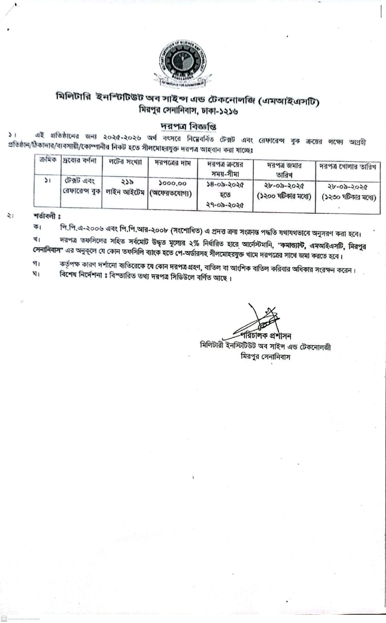 MIST Admission Test-2026, Selected Candidates' List (2nd Merit List)